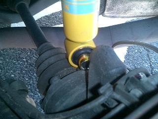 車体に入り込んでいるアブソーバーのカラーが抜けて「ゴソッ」とサスが外れる^^