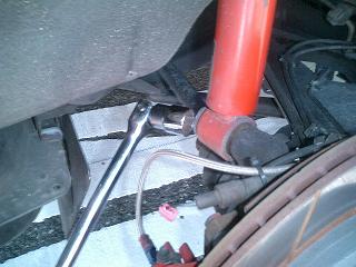 アブソーバー下側のボルト(22mm)を緩めます。