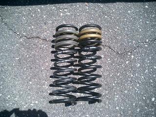 左が、取り外したザックス製サスキットのコイル(アイバッハ製)
