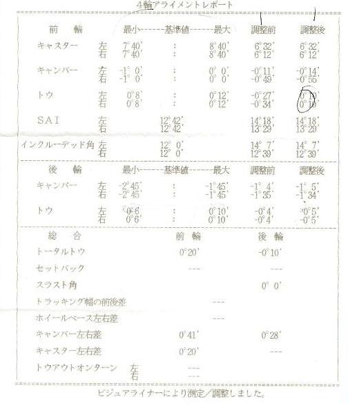 同じアライメントを行うならこの頃の車に精通しているショップのほうが良いナァ・・・と。