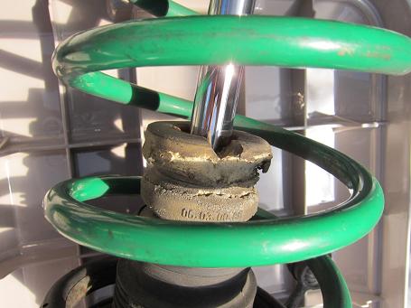 この時に純正品に交換したアッパーマウントだ。 サーキットなどハードな走行もあり、約6万キロを走ったがベアリングのゴリゴリした感じもなければゴムに亀裂もない。 やはり足回りゴム系のパーツは純正品が正解だ。